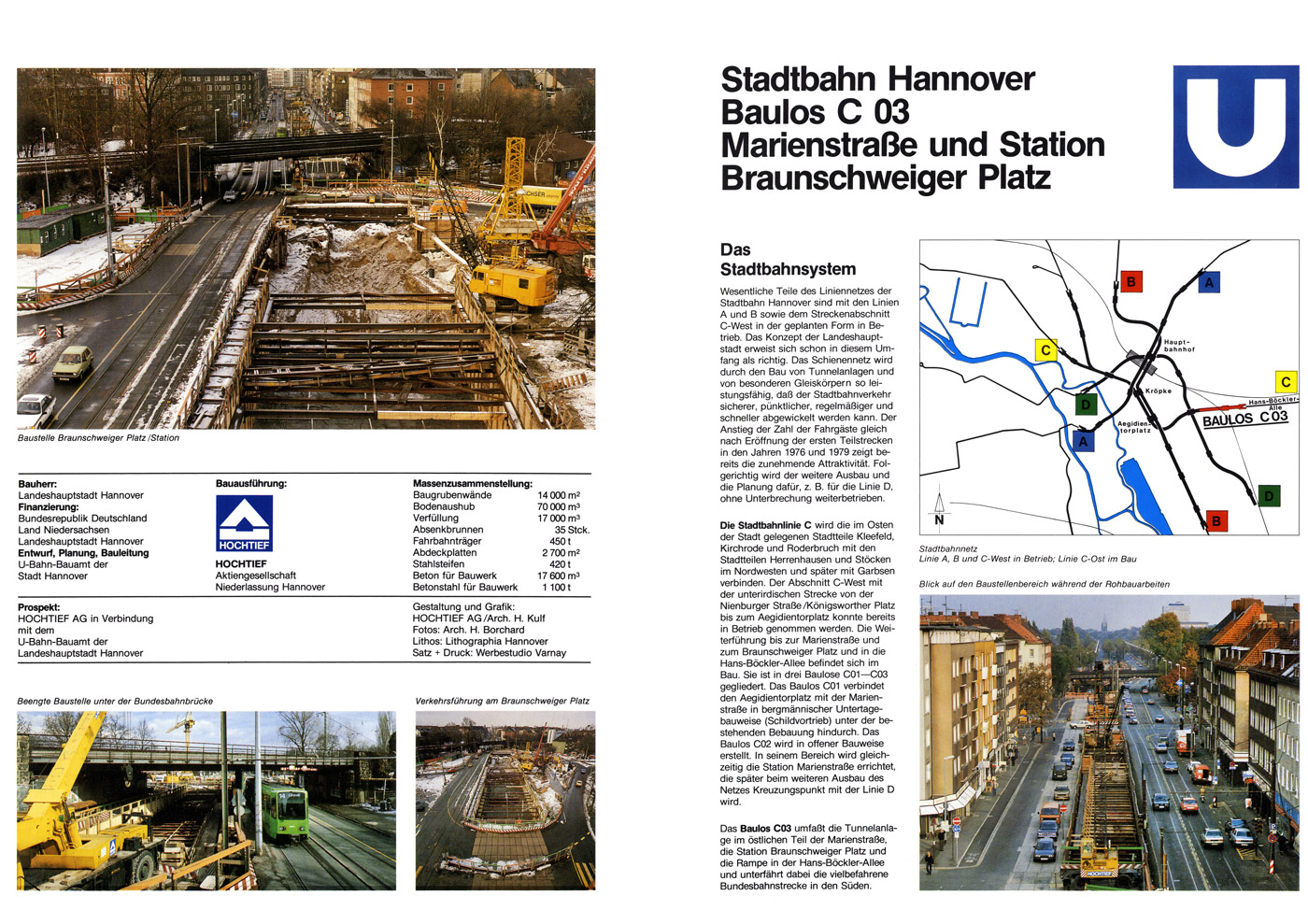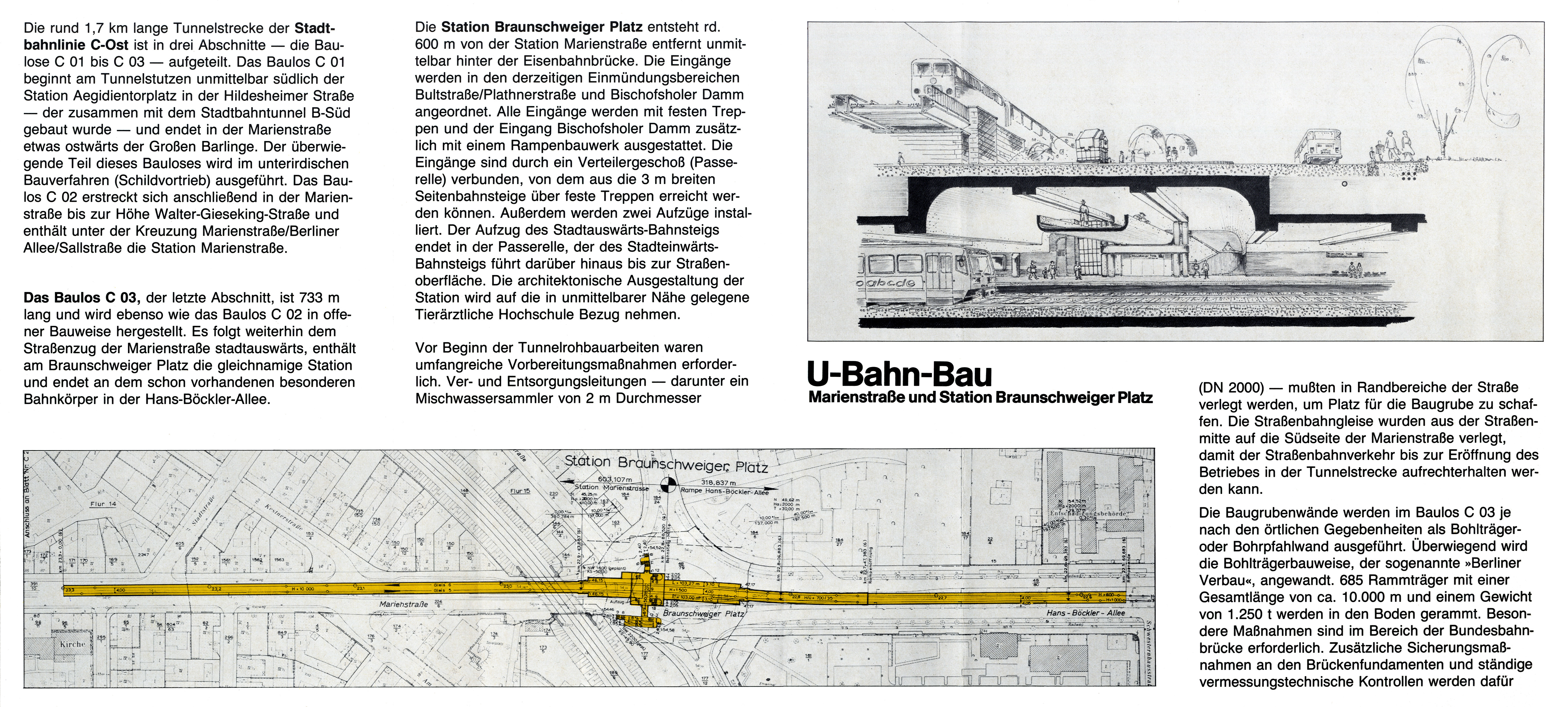 | Infobroschüre | Baulos C 03 Marienstraße und Station Braunschweiger Platz | 1987 | Download |