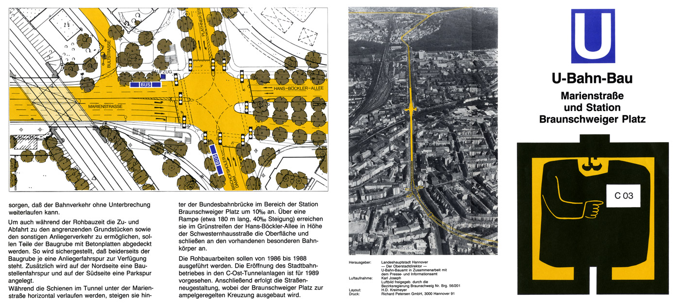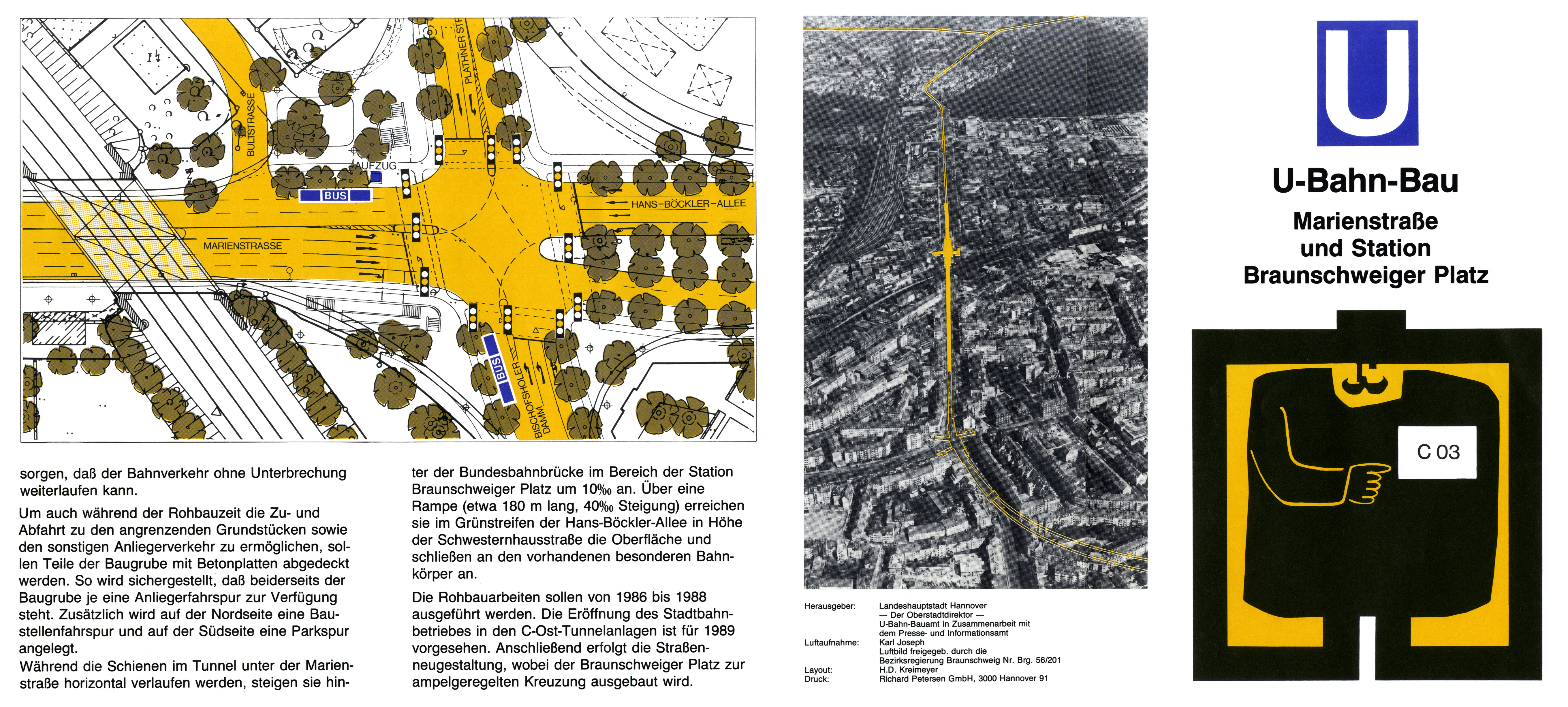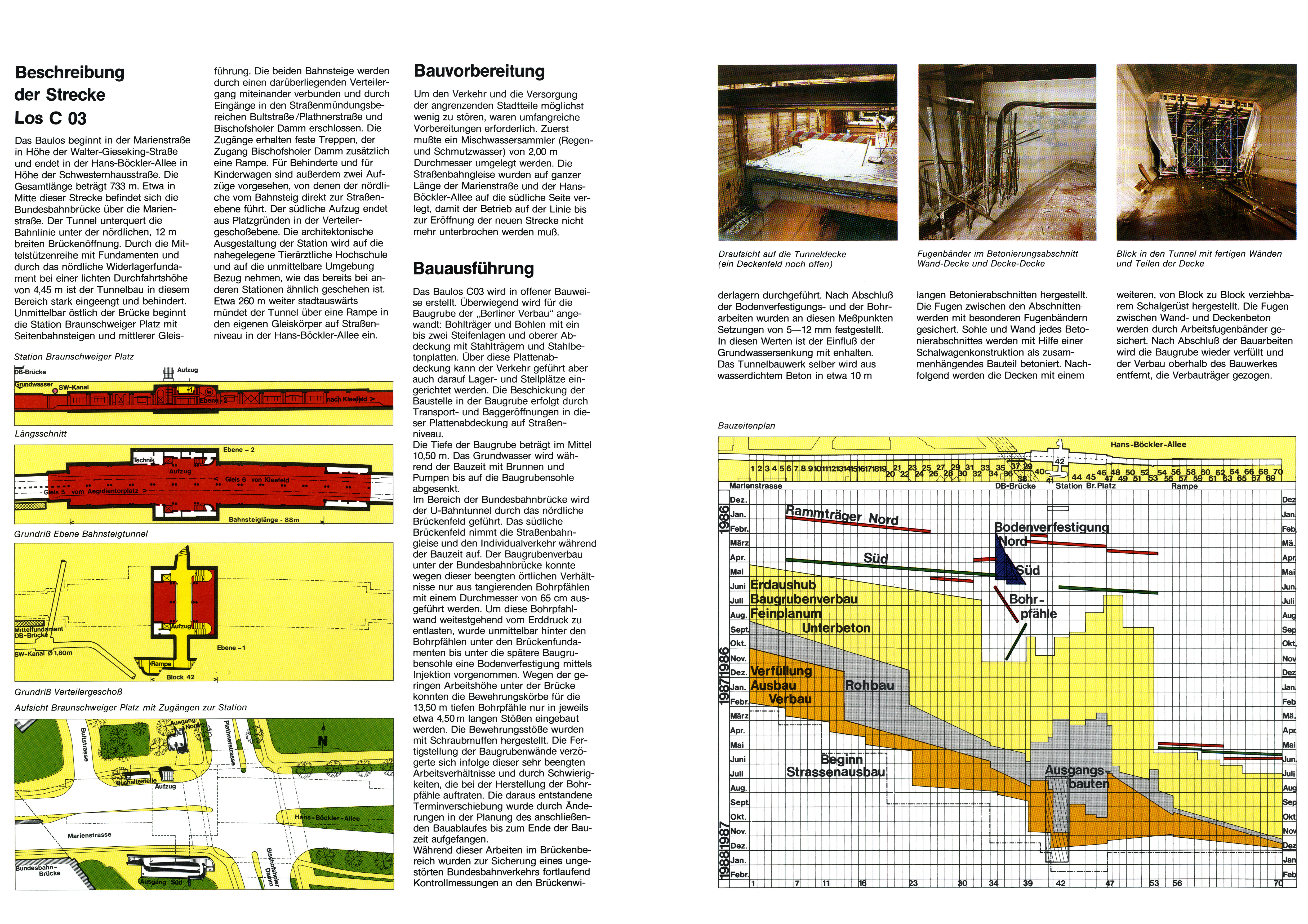 In dieser Infobroschüre aus dem Jahr 1987 wird das Baulos C 03 in der Marienstraße und mit der Station Braunschweiger Platz detailliert vorgestellt, inklusive Bauzeitenplan.