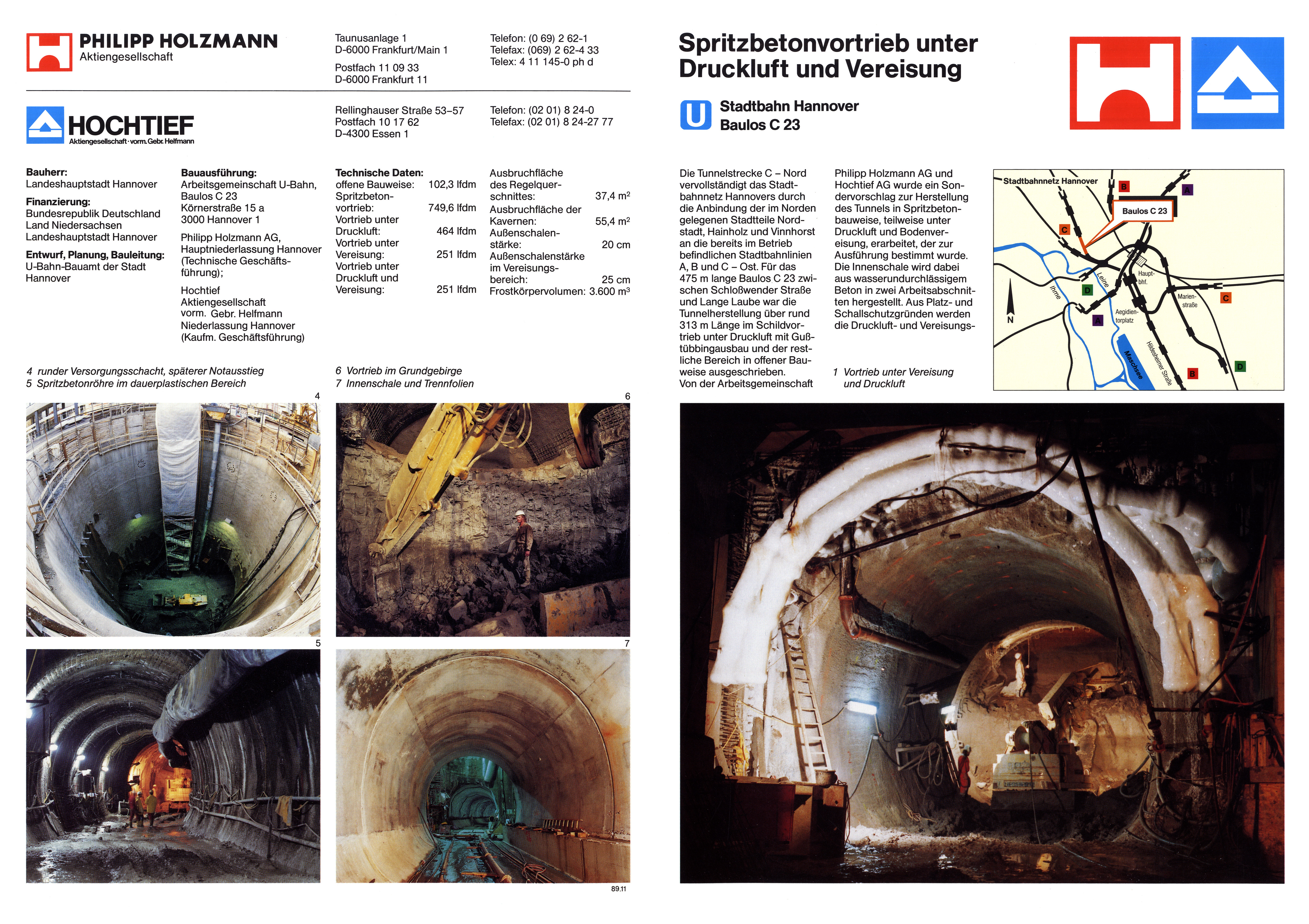 | Infobroschüre | Baulos C 23 Spritzbetonvortrieb unter Druckluft und Vereisung | 1989 | Download |