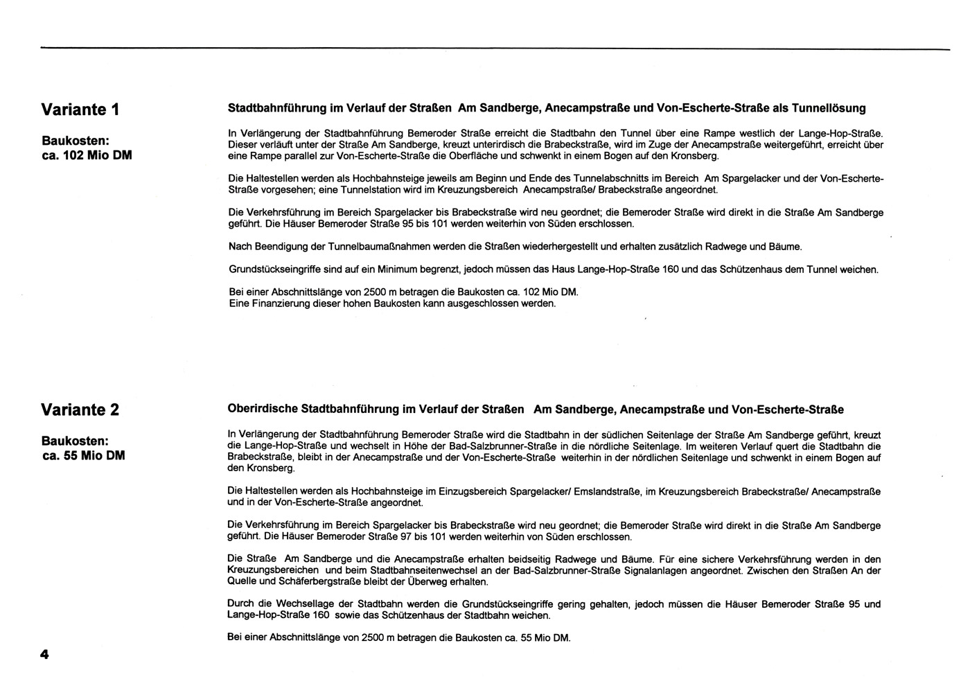 Zur Diskussion: Stadtbahnführung Bemerode (1993)